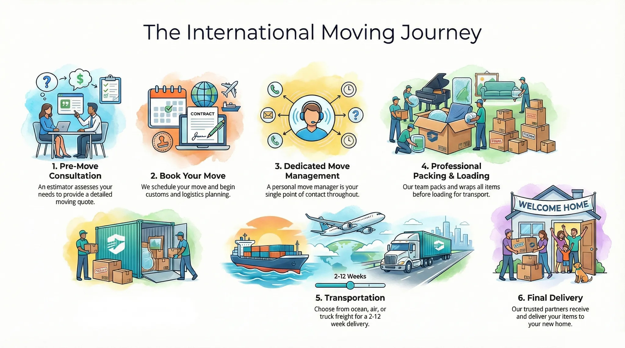 - We can move you from anywhere in the US to most countries, no matter if you’re in New York City, Florida, Seattle, or anywhere in between.